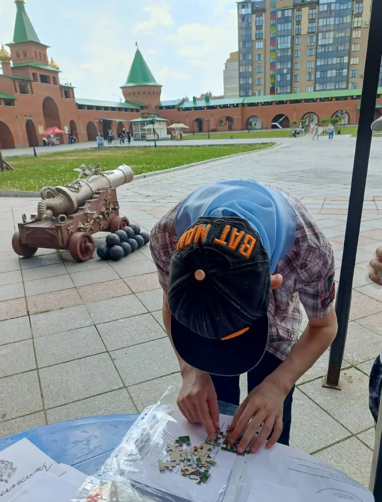 Затем участники мероприятия разгадывали кроссворды и ребусы по сказкам Александра Сергеевича Пушкина, собирали пазл «Кот учёный».