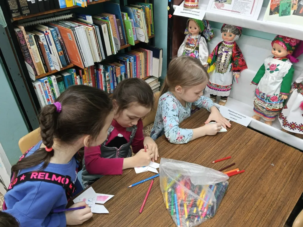 В ходе мероприятия ребят познакомили с детскими книгами-юбилярами, писателями-юбилярами 2026 года, а также с тематической выставкой " Единство в многообразии: куклы народов Поволжья ", приуроченной к Году единства народов России.