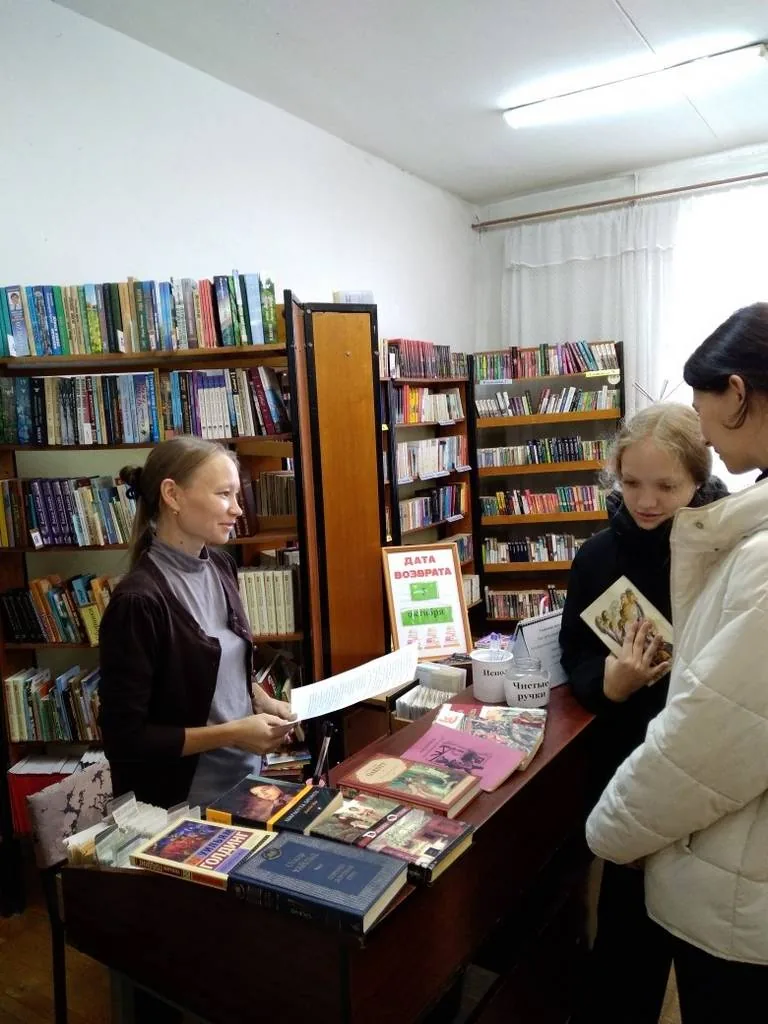 Библиотекарь познакомила участников мероприятия с книгами, которые пользуются спросом у читателей и с новинками литературы.