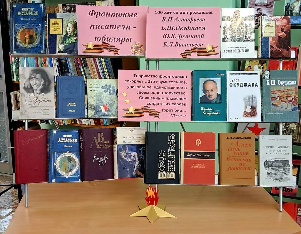 В мае 2024 года мы отмечаем юбилеи Ю. Астафьева (1мая -100 лет), Б. Окуджавы (9 мая – 100 лет), Ю. Друниной (10 мая – 100 лет), Б. Васильева (21 мая – 100 лет).