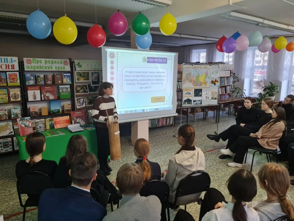 В библиотеке-филиале №3 в рамках программы «Пушкинская карта» для учащихся 9 «В» класса средней школы №9 состоялась Своя игра «Люби и знай Марийский край», посвященная родному краю – Республике Марий Эл.