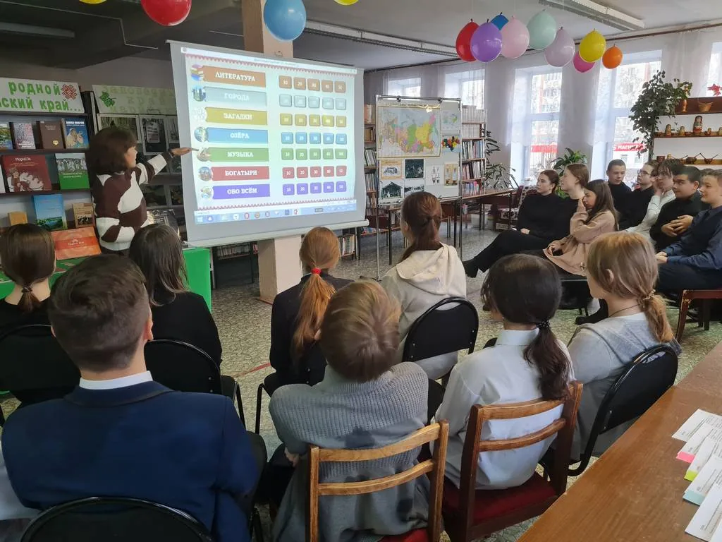 Разделившись на две команды и дав им названия, учащиеся отвечали на вопросы по темам: «литература», «музыка», «города», «загадки», «богатыри», «озёра», «обо всем».