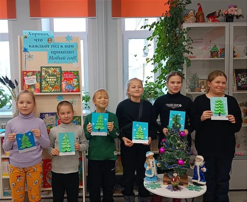 В рамках фестиваля «Марийская зима-детям» для юных читателей был проведен мастер класс по изготовлению объемной аппликации из бумаги «Маленькая ёлочка». Сначала детям прочли рассказ С. Козлова «Как Ослик, Ежик и Медвежонок встречали Новый год» и познакомили с книжно-иллюстративной выставкой «Хорошо, что каждый год к нам приходит Новый год!». Это создало новогоднее настроение и вдохновило детей на создание своих произведений.