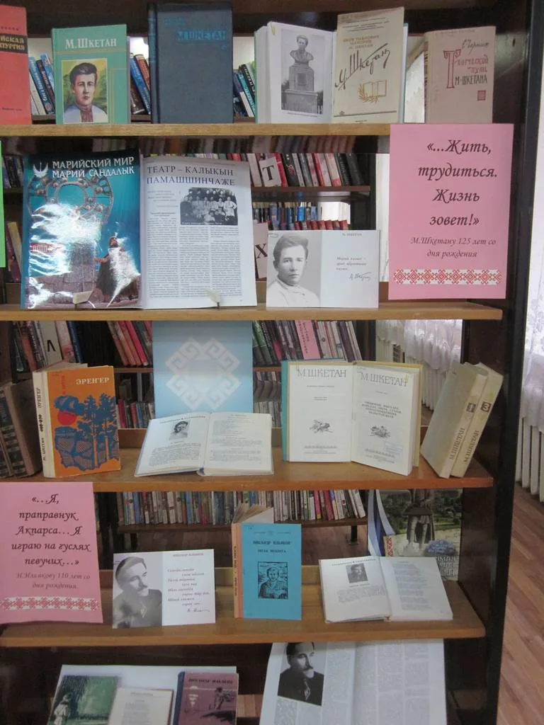 Выставка-панорама посвящена марийским писателям-юбилярам 2023 года: С. Г. Чавайну – 135 лет со дня рождения, М. Шкетану – 125 лет со дня рождения, Н. Ф. Ильякову – 110 лет со дня рождения.