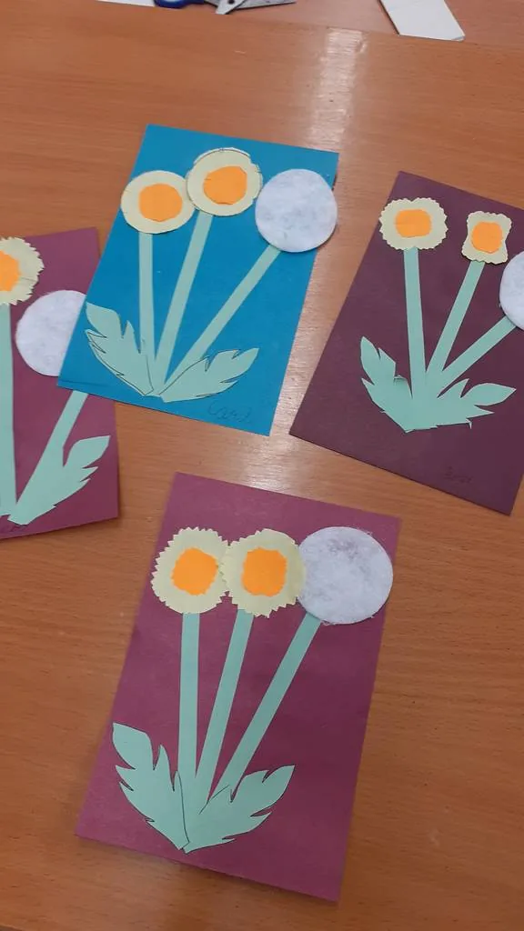 Продолжилось мероприятие мастер-классом, на котором ребята делали открытку с букетиком из одуванчиков.