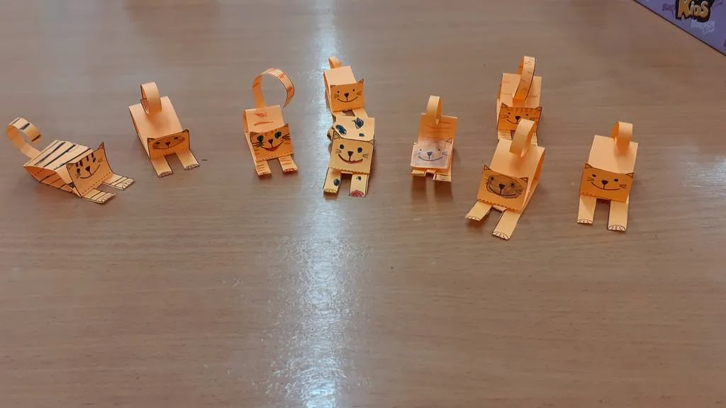 На мастер-классе ребята делали из бумаги поделку - котёнка Гава. Вырезав, а затем склеив фигурку, дети могли проявить свою фантазию, раскрашивая своего котика. Кто-то решил сделать котёнка полосатым, кто-то зеленоглазым и т.п.
