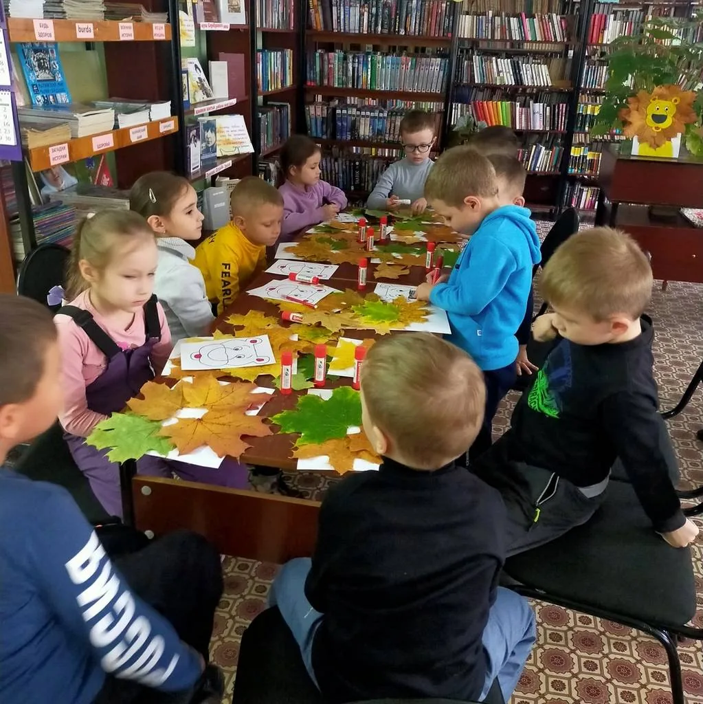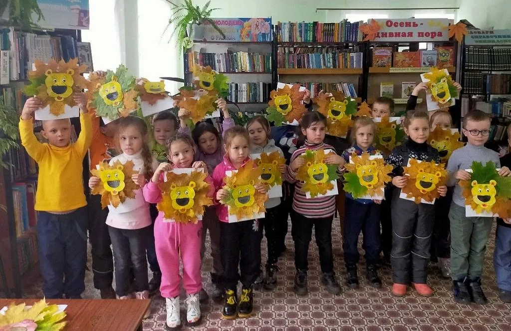 27 сентября в библиотеке-филиале №12 для ребят подготовительной группы "Ромашка" детского сада №84 "Аленушка" проведен мастер-класс «Лев из осенних листьев».