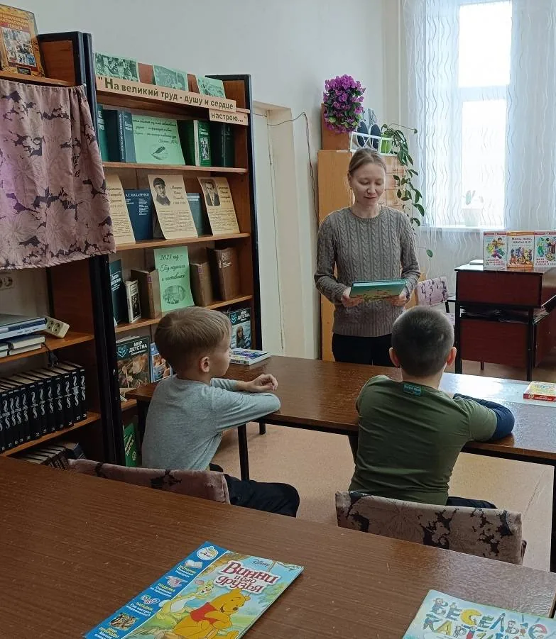 Библиотекарь прочитала рассказ Михаила Пришвина «Белый ожерёлок» с последующим его обсуждением. Главная мысль рассказа: тот, кто тебе помогает – твой друг. Потом дети отгадывали загадки.