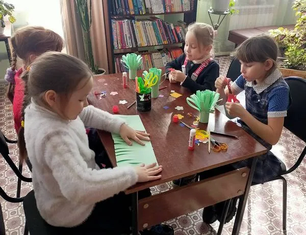 В преддверии праздника в библиотеке-филиале №12 на очередном занятии кружка "Чудесная мастерская" был проведен мастер-класс «Подарок для любимой мамы». Девочки смастерили красивые букетики для своих мам и бабушек из цветной бумаги. Они очень старались, аккуратно обводили и вырезали цветочки, гармонично подбирали к каждому цветочку серединку.