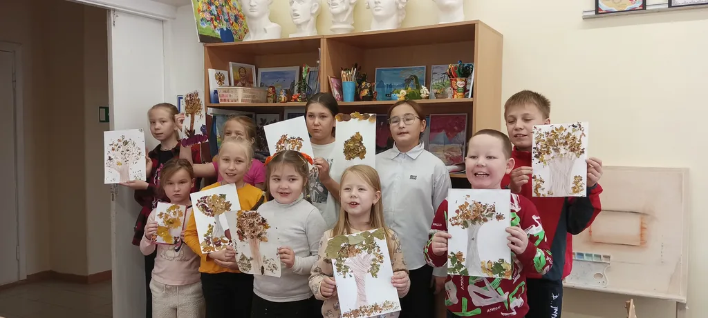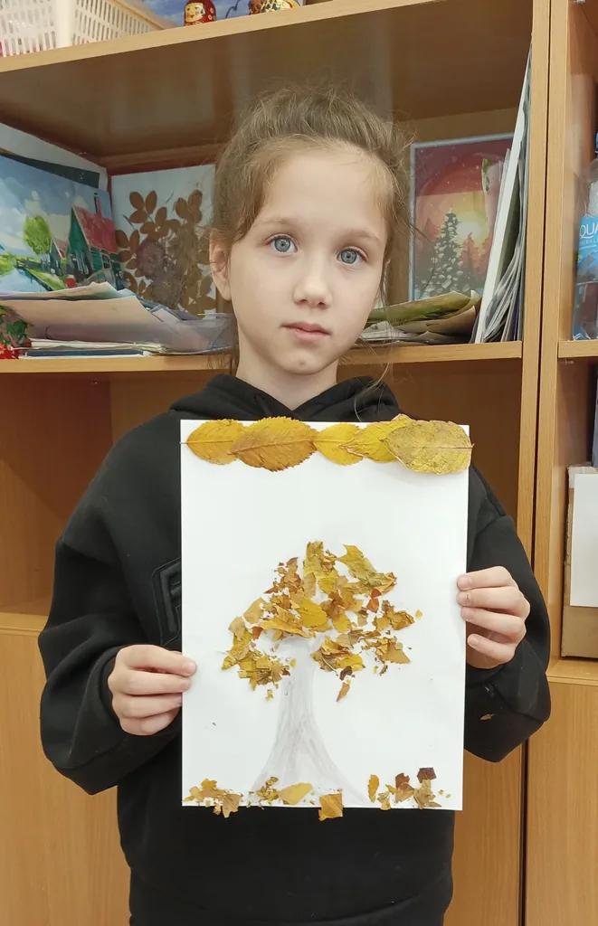 Поэтому на мастер-классе с детьми из МБОУДО «Центр дополнительного образования для детей клуба «Искорка» рисовали обычными разнообразными осенними листьями, которые предварительно были собраны и высушены.