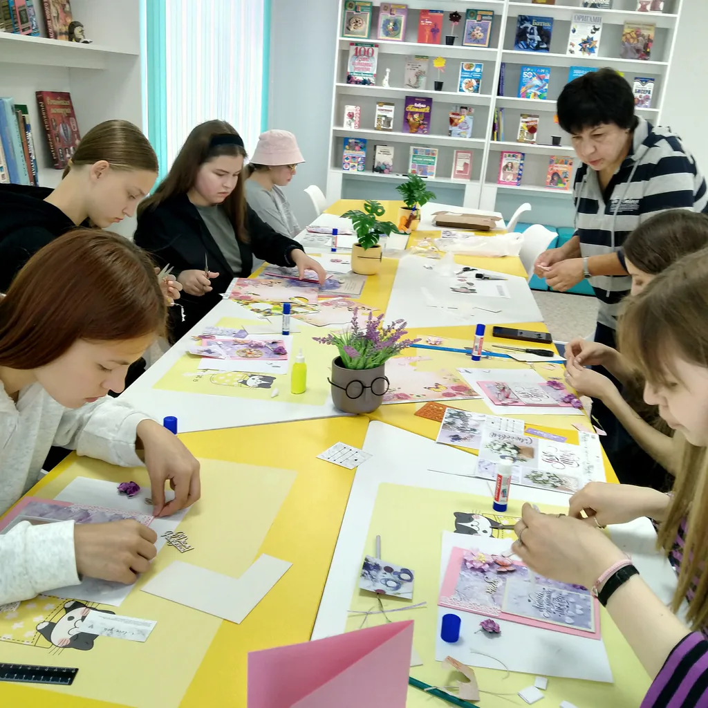 14 августа в модельной Центральной детской библиотеке в рамках программы “Пушкинская карта” прошел мастер -класс по изготовлению поздравительной открытки в технике скрапбукинг.