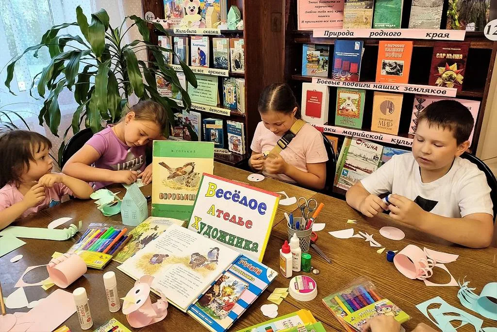 В библиотеке-филиале №19 в рамках программы летнего чтения «Книжная улыбка лета» и городского проекта «Летом! Вместе! Всем двором!» в летней мастерской «Веселое Ателье Художника» для детей прошел мастер-класс «Воробьишко Пудя».