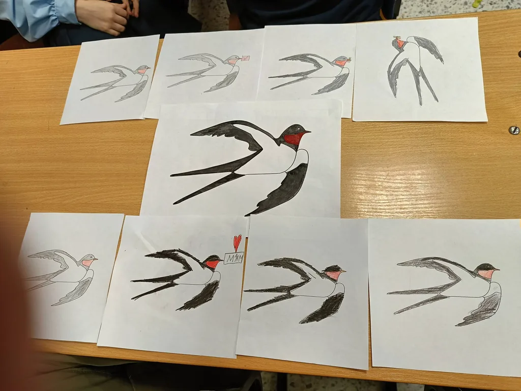 В заключение мероприятия школьники рисовали ласточку, чтобы помнить и никогда не забывать, и не сдаваться, также как жители Ленинграда.