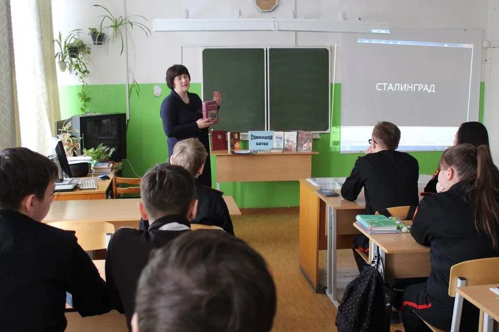 26 января для учащихся 9 класса МБОУ «СОШ имени Героя Советского Союза В.С. Архипова с. Семеновка г. Йошкар-Олы» проведен урок памяти «Сталинградская битва: хроники великой победы». Ребятам рассказали об основных этапах Сталинградского сражения, об оборонительном и наступательном периодах битвы. Говорили о самых кровопролитных боях за Мамаев курган. Рассказ сопровождался показом слайдов с фотографиями военного времени. Ребятам очень повезло, что учительница истории в их школе Биктимирова Марина Ефимовна, оказывается, родом из- под Волгограда. Марина Ефимовна рассказала о Мамаевом кургане, о климате в тех местах, о том, в каких, действительно, тяжелейших условиях защищали наши войска Сталинград и подступы к нему. Были показаны видеоролики военной хроники и о мемориальном комплексе «Мамаев курган». К мероприятию была подобрана литература, связанная со Сталинградским сражением.