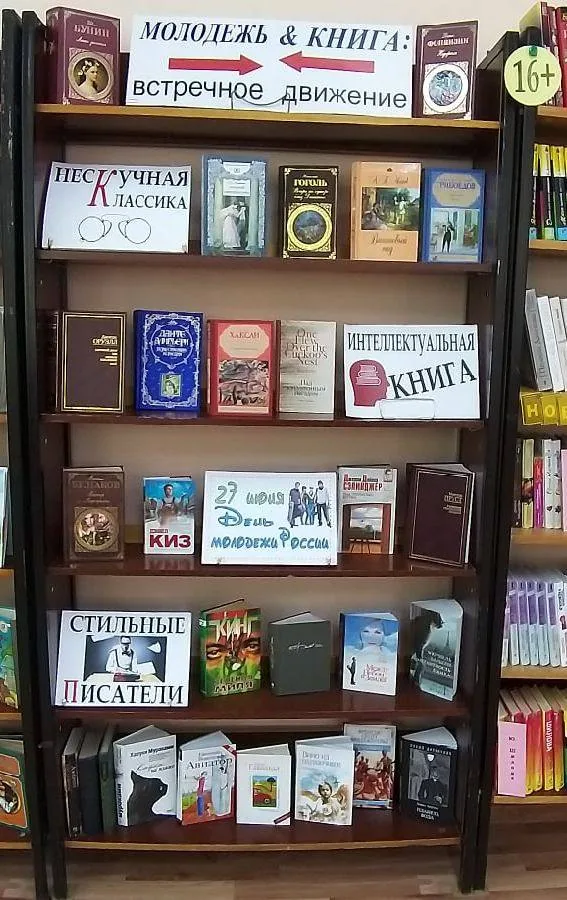 Ко Дню молодёжи России в Центральной библиотеке приурочена выставка-диалог «Молодежь и книга: встречное движение». Название первого раздела «Нескучная классика» говорит само за себя. Здесь представлены книги, которые читает уже не одно поколение молодёжи. Это произведения: И. Бунина и Н. Гоголя, А. Пушкина и А. Чехова, Д. Фонвизина и А. Грибоедова.