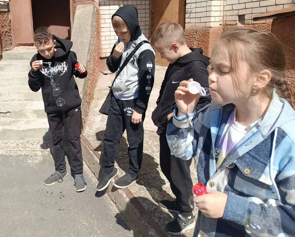 Дети охотно приняли участие в подвижной игре-эстафете «Солнышко и лучики» и игре с мыльными пузырями.