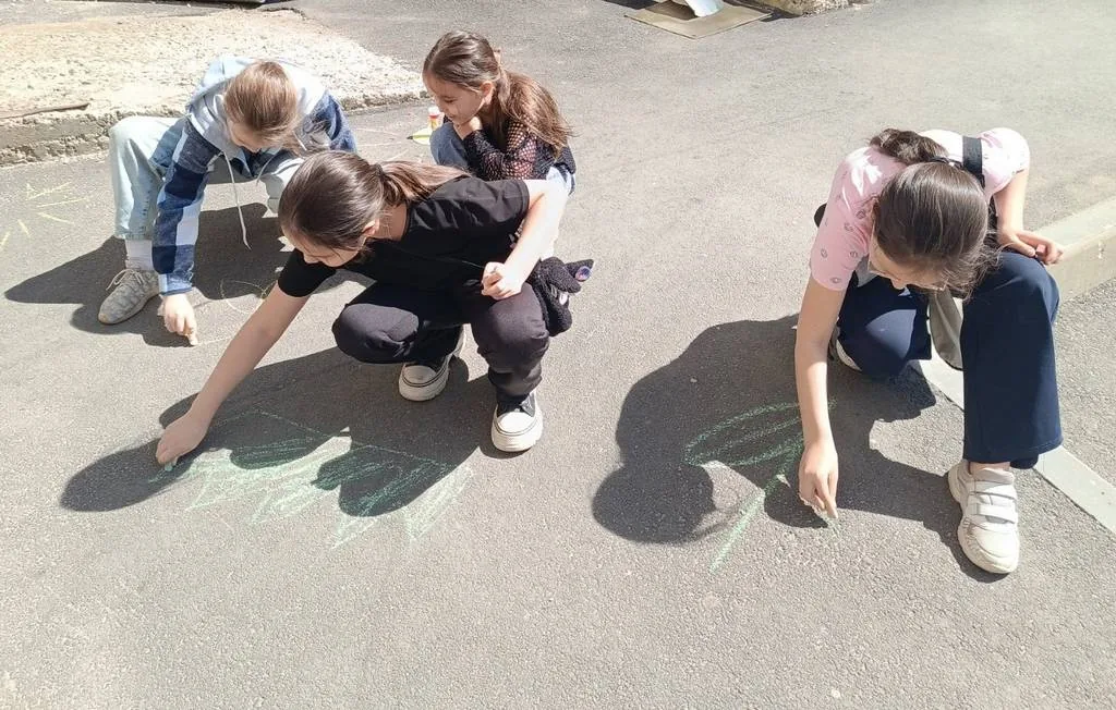 Завершилось мероприятие конкурсом детских рисунков на асфальте «Счастье, солнце, дружба».