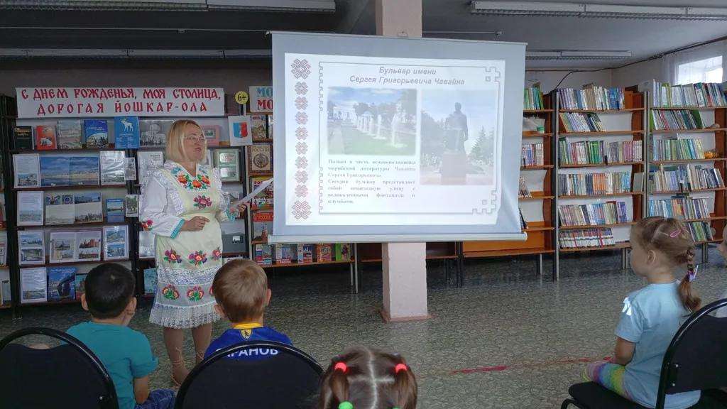 Путешествуя, дети узнали для себя много нового: как раньше называли наш город, как в переводе с марийского языка на русский звучит название Йошкар-Ола, на берегу какой реки расположен город и сколько лет ему исполняется в этом году. Ребята узнали, как выглядит герб и флаг города Йошкар-Олы, послушали гимн города, посмотрели слайды с фотографиями городских достопримечательностей.