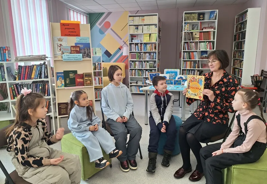 Юные читатели рассматривали иллюстрации, отвечали на вопросы, беседовали с библиотекарем о дружбе народов и славных традициях России.