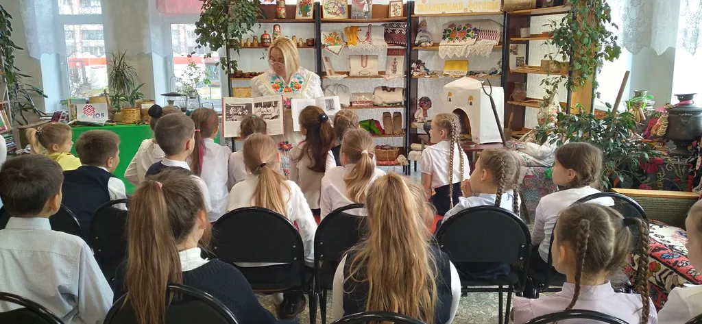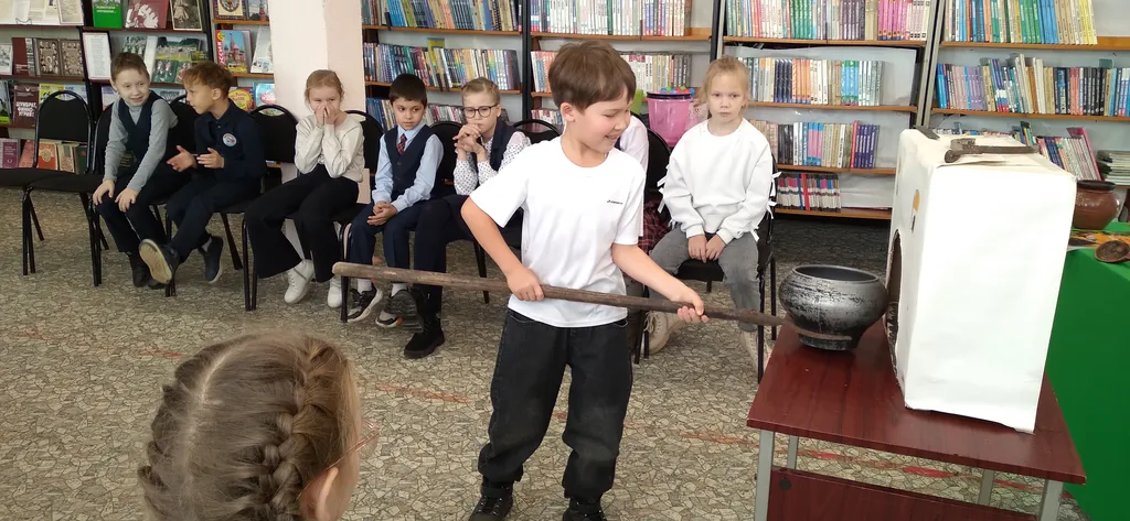 Библиотекарь познакомила учащихся с легендой о могучем великане-патыре Онаре, а затем началось знакомство с экспонатами краеведческого уголка библиотеки, и дети ненадолго оказались в прошлом.