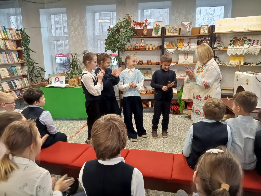 Узнали ребята и о том, что в марийских семьях детей привлекали к труду с самого раннего возраста – мальчиков обучали ремесленному делу, умению плести лапти, а девочек – учили искусству вышивания. Любили в марийских семьях праздники – где поют, танцуют и играют. Огромное удовольствие детям доставила народная игра «Вращение лаптей».