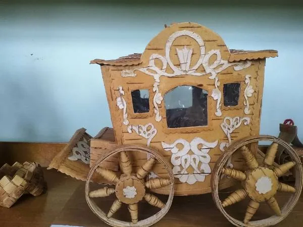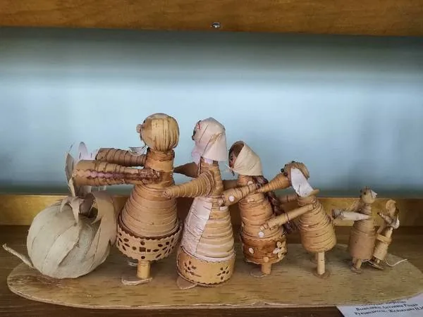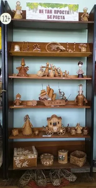 В поддержку сохранения, возрождения и развития народных художественных промыслов и ремёсел в библиотеке - филиале №4 действует выставка изделий из бересты. Береста привлекала внимание народных умельцев тем, что при обработке она сохраняла свои свойства - мягкость, гибкость и прочность. Все выставленные предметы-творения рук учащихся МБУДО «Детской школы искусств №4 города Йошкар-Олы» под руководством Желонкиной Н.М. В этот раз сказочные экспонаты удивили всех наших читателей: герои сказок «Репка», «Золушка », корабль с парусами из произведений Пушкина и другие. При взгляде на эти предметы появляется ощущение чего-то близкого, родного. Создаётся впечатление, что полученные изделия живут и дышат. Это и понятно, ведь берёза испокон веков почиталась как символ русской души, золотом России и тёплым деревом. Даже в холодной комнате кусок бересты или изделие из неё остаётся тёплым, так как обладает большой положительной энергетикой. Стоит только прикоснуться к ней, подержать в руках и на душе становится тепло и спокойно. Так же изготавливали колыбели, посуду, обувь и другие предметы быта.
