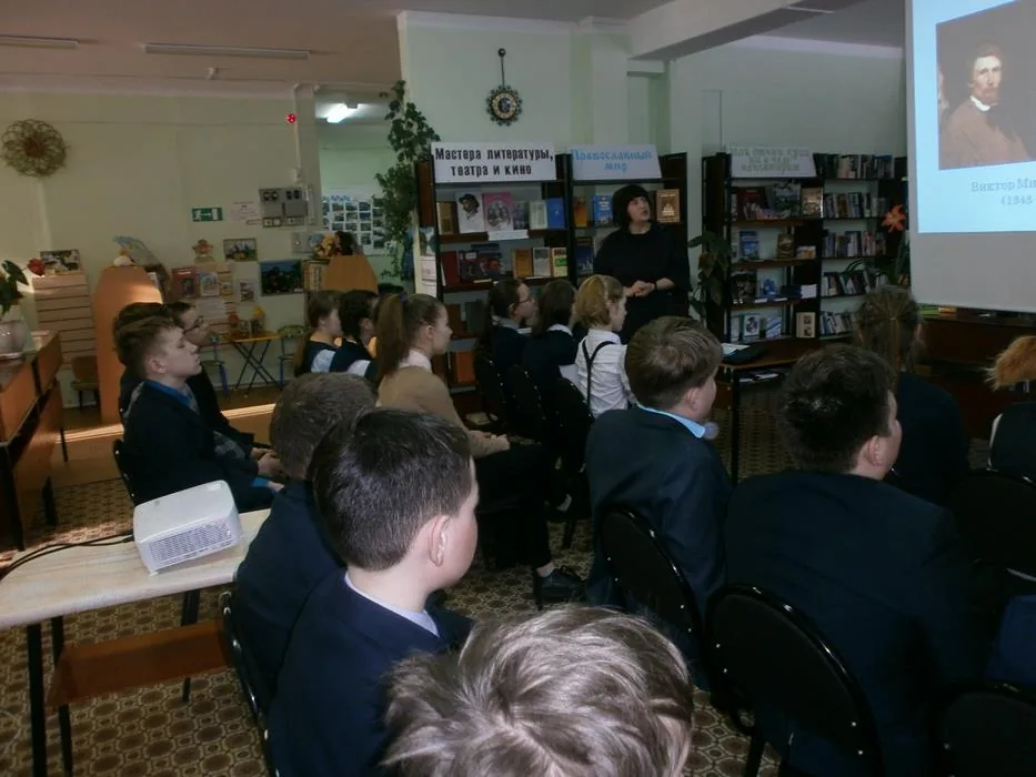 29 марта проведен час искусства «Мастера кисти» для учащихся 6- х классов МБОУ «СОШ №21». Мероприятие приурочено к юбилеям художников Б. Кустодиева (140 лет), В. Васнецова (170 лет), В.Сурикова (170 лет). Ребятам кратко рассказали о жизни и творчестве этих выдающихся художников. Рассказ сопровождался показом слайдов. Были показаны репродукции наиболее ярких картин художников, рассказано о том, как эти картины создавались. Остановились на таких картинах, как: «Три богатыря» Васнецова, «Утро стрелецкой казни» и «Боярыня Морозова» Сурикова, «Масленица» и «Чаепитие купчихи» Кустодиева.