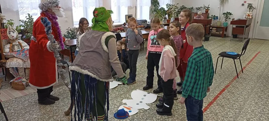 Мальчишки и девчонки согласились помочь Деду Морозу, но это было не так легко – для того, чтобы найти, где Баба Яга спрятала волшебную книгу, ребятам необходимо было составить слово из букв, которые они должны были искать, выполняя задания лесной жительницы: