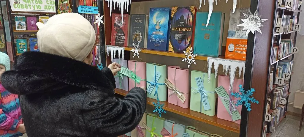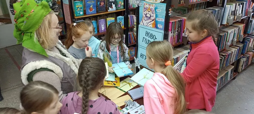 Игротеку продолжило отгадывание шарад и Семейная новогодняя литературная викторина с простыми и не очень вопросами о любимом празднике. Также взрослые и юные читатели получили возможность выбрать книгу-сюрприз (книга была упакована и лишь по аннотации к книге читатель определял, хочет ли взять ее) для приятного чтения в новогодние праздники.