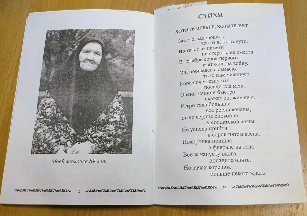 На последней странице книги она дописала ручкой строки, посвящённые любимой маме.