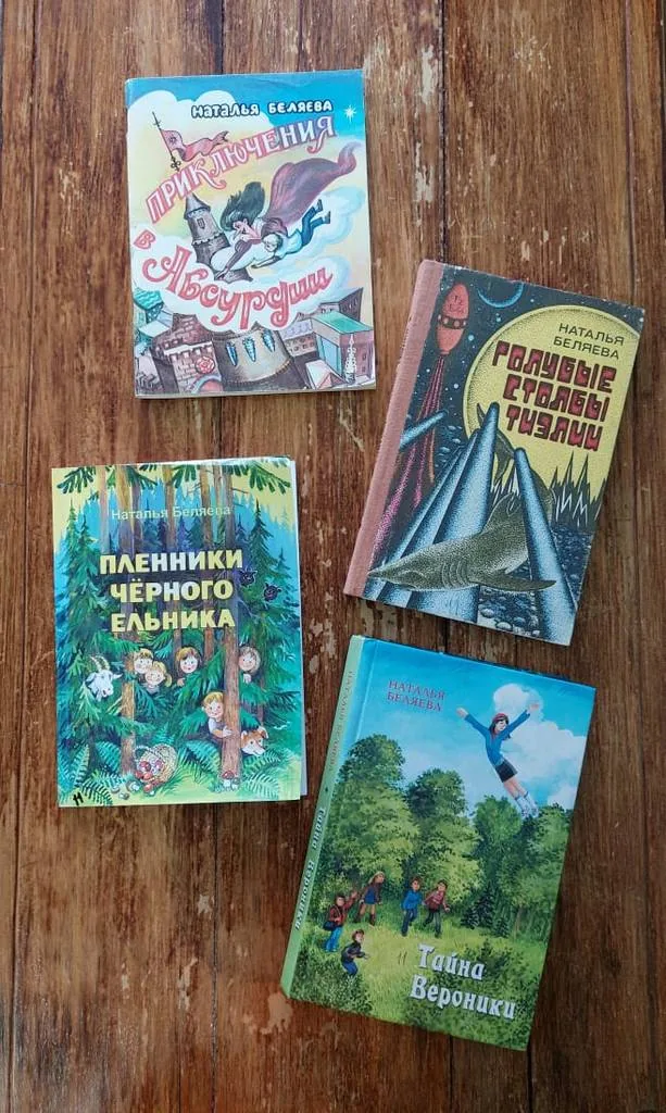Книги Натальи Константиновны написаны для подростков. Сказки «Приключения в Абсурдии», «Пленники черного ельника», фантастические повести «Голубые столбы Тиэлии» и «Тайна Вероники» пользуются спросом в нашей библиотеке. Государство Абсурдия, деревни Медузия и Кашка, планета Тиэлия, - сказочно - фантастические места книг Беляевой. Герои книг, мальчишки и девчонки, добывают неизвестное землянам вещество. Дружный класс спасает целую цивилизацию, а новенький отличник в седьмом «в» оказывается обыкновенным инопланетным шпионом. Это мир книг писателя, где взаимопомощь и дружба помогают найти выход из трудной ситуации.