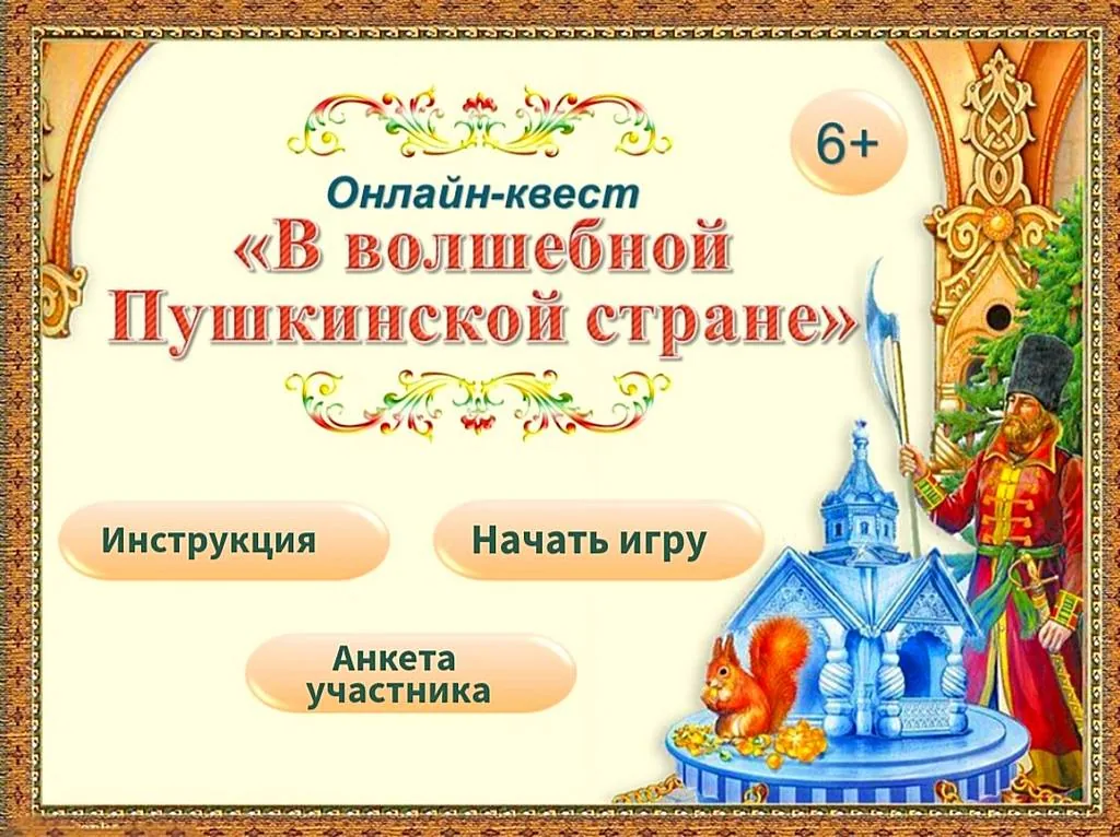 Квест состоит из 5 этапов. Ваша задача - пройти все задания квеста, собрать 5 кодовых слов и из них составить ключевую фразу А. С. Пушкина. Вас ожидают филворды, кроссворды, сказочные ребусы, головоломки, загадки.