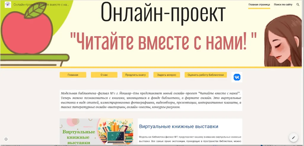 Модельная библиотека-филиал №1 запускает онлайн-проект «Читайте вместе с нами». Это единая библиотечная интернет-площадка для размещения медиапродуктов, доступных для пользователей в любое время.