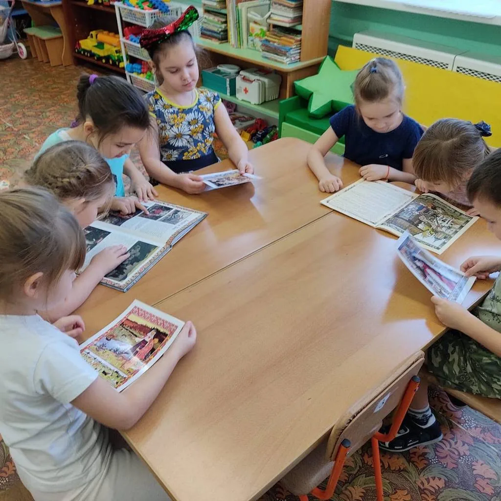 Дети вспоминали краткое содержание сказок «Лягушка-царевна», «Финист – ясный сокол», «Сказка о рыбаке и рыбке», «Сказке о царе Салтане» в ходе ответов на вопросы библиотекаря. В конце занятия они рассматривали книги и иллюстрации художника, раскрашивали декоративные буквы в билибинском стиле.В свободное время ребятам читали книги, оформленные Билибиным, и продемонстрировали мультфильм «Иван царевич и серый волк», созданный по его рисункам.
