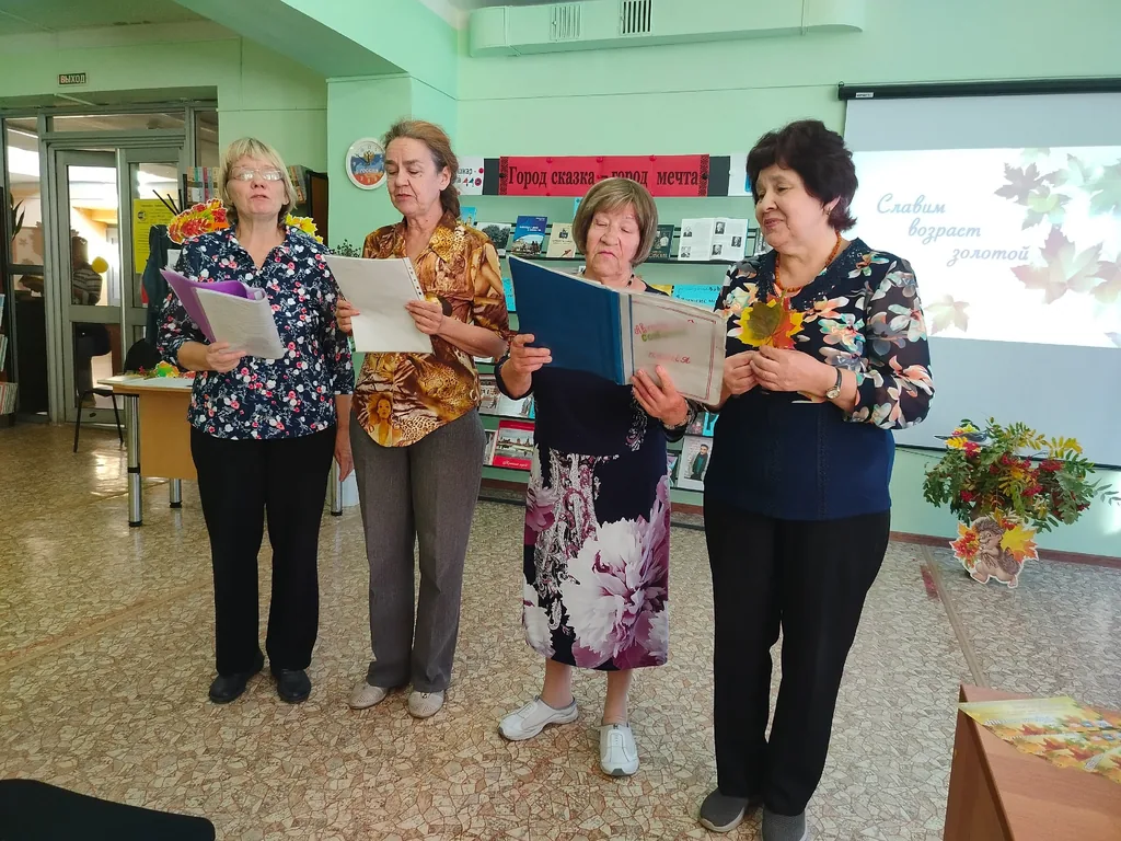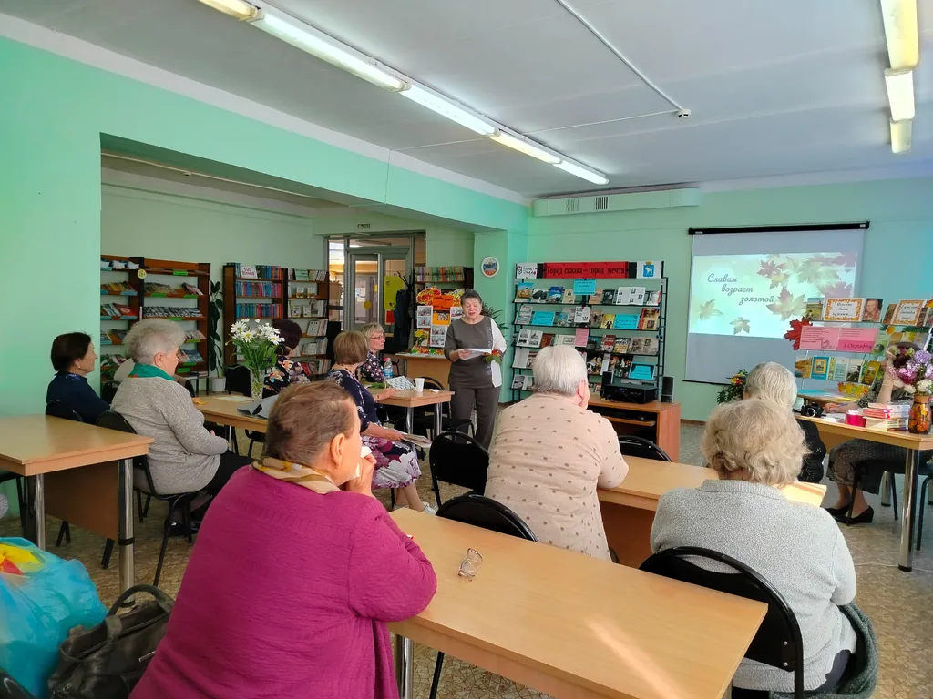 В клубе общения для людей пенсионного и пожилого возраста «До и после 55» при Центральной библиотеке имени Р.С. Иванченко в течение 3,5 часов проходил день хорошего настроения «Осень в туфельках идёт по листьям», приуроченный Международному дню пожилых людей.