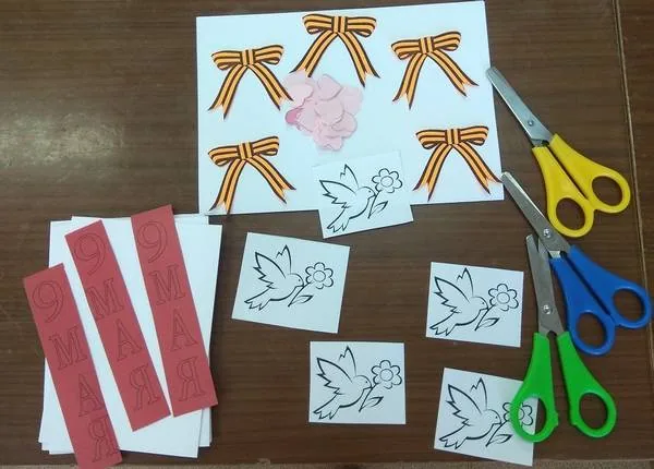 Дети сделали поздравительные открытки для ветеранов своими руками, которые будут им вручены. Лучший подарок – тот, что сделан своими руками. В этой открытке самые важные детали: голубь мира – знак мира на всей Земле, георгиевская лента – цвета георгиевской ленточки имеют глубокое символическое значение – это цвета пороха и огня, Победы, мужества и героизма, символ памяти и уважения ветеранов, и цветок выражает благодарность ветеранам, отстоявшим великую Родину в трудные годы войны.