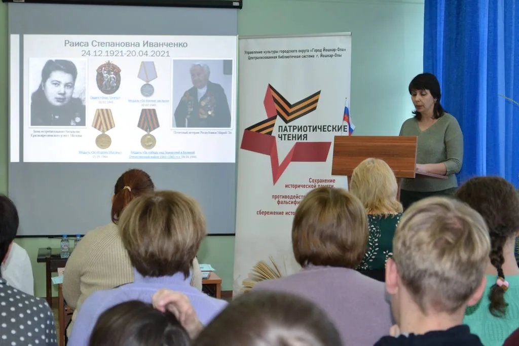 На базе Центральной библиотеки им. Р. С. Иванченко 8 декабря 2022 г. состоялись Патриотические чтения, посвященные участнице Великой Отечественной войны, Почетному ветерану Республики Марий Эл, Заслуженному работнику культуры Марийской АССР, первому директору Централизованной библиотечной системы г. Йошкар-Олы Иванченко Раисе Степановне. Данное мероприятие было приурочено ко Дню героев Отечества и проведено в прямом контексте Указа Президента РФ № 809 «Об утверждении Основ государственной политики по сохранению и укреплению традиционных российских духовно-нравственных ценностей», подписанного 9 ноября 2022 года.