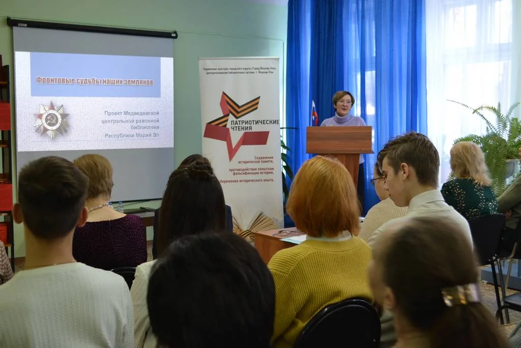 О работе над проектом «Книга памяти» рассказал директор Музея истории города Йошкар-Олы, Заслуженный работник культуры Республики Марий Эл Хрулёв Владимир Михайлович. Другой, созвучный проект «Фронтовые судьбы земляков» представила Костылева Надежда Евгеньевна, заведующая отделом обслуживания Медведевской центральной библиотеки, Заслуженный работник культуры Республики Марий Эл. В обоих случаях ведется колоссальная работа по поиску и сверке сведений об участниках Великой Отечественной войны, уроженцах города Йошкар-Олы и Медведевского района.