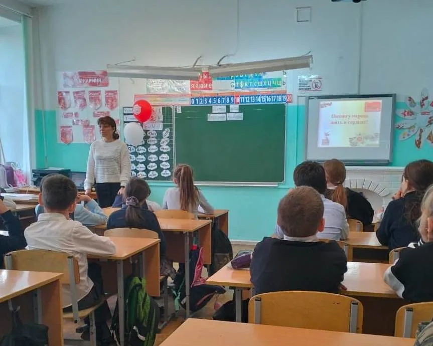 В завершении мероприятия школьники почтили память погибших минутой молчания.