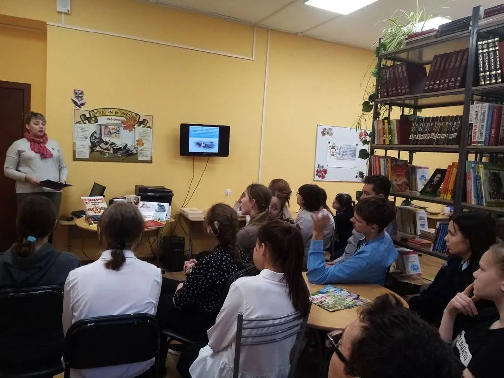 И уже после доклада выступающего, ребята и педагоги с интересом изучали литературу из фонда сельской библиотеки, сопровождающую и дополняющую речь докладчика, пытаясь отыскать среди списков героев имена родных и близких, участников Великой Отечественной войны.