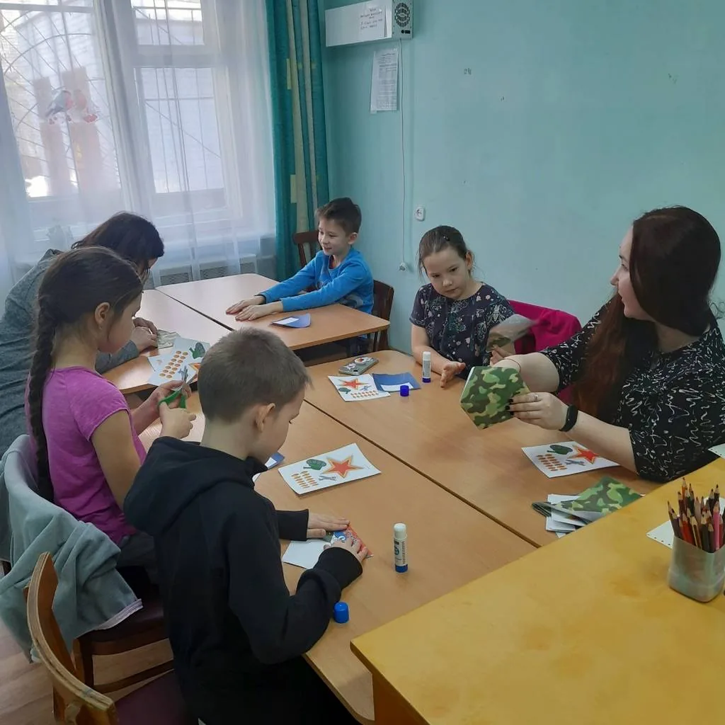 Ещё для ребят были подготовлены различные конкурсы: "Интеллектуалы", "Шифровщики", "Собери слово", "Каша из топора", "Самый ловкий" и др. Со всеми заданиями дети справились на отлично. В конце мероприятия был проведён мастер-класс по созданию поздравительной открытки к 23 февраля.