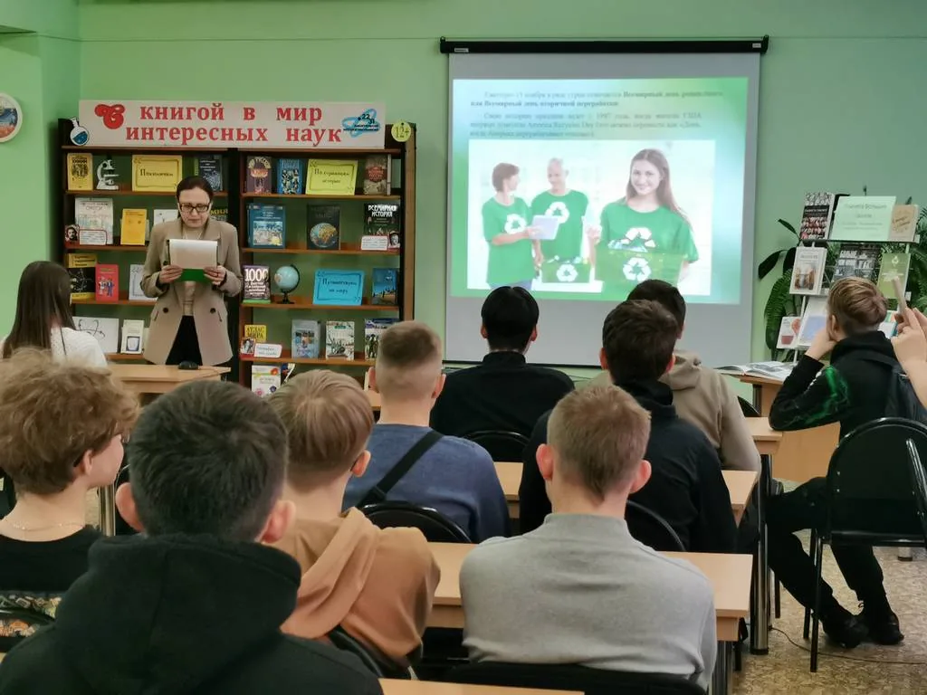 14 ноября в Центральной библиотеке имени Р. С. Иванченко для студентов ВК ПГТУ «Политехник» был проведён экологический час «Планета больших свалок», посвященный Всемирному дню вторичной переработки. Впервые этот день прошёл 15 ноября 1997 года в США. Затем он распространился на другие страны. Цель этого экологического праздника – привлечь внимание властей и общественности к проблемам переработки бытового мусора и промышленных отходов.