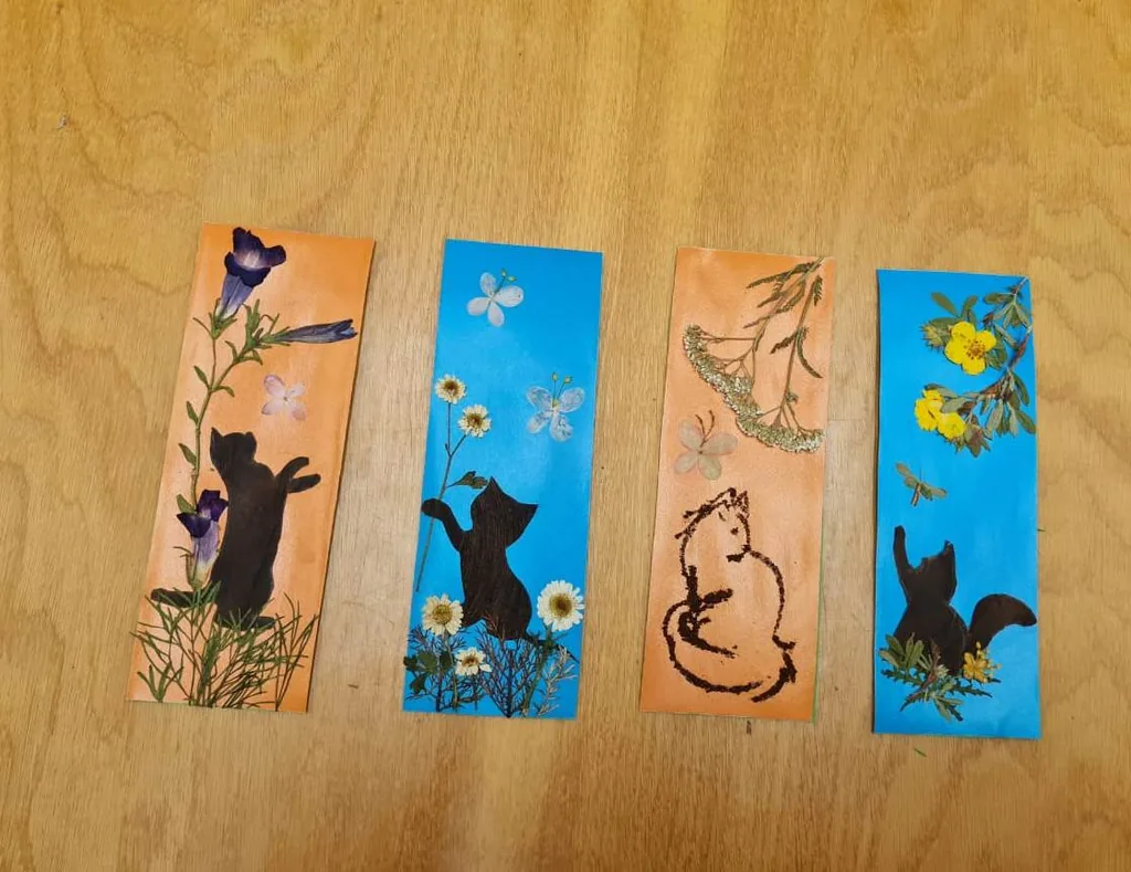 В ходе изготовления участники мастер-класса проявили творчество, фантазию, воображение. Особенно понравилось придумывать дизайн кошки, где животное было изготовлено из коры банана, а также молотого кофе. Цветочки, листочки приклеивались на клей и основу из картона, создавалась композиция и закладка-кошечка «оживала».