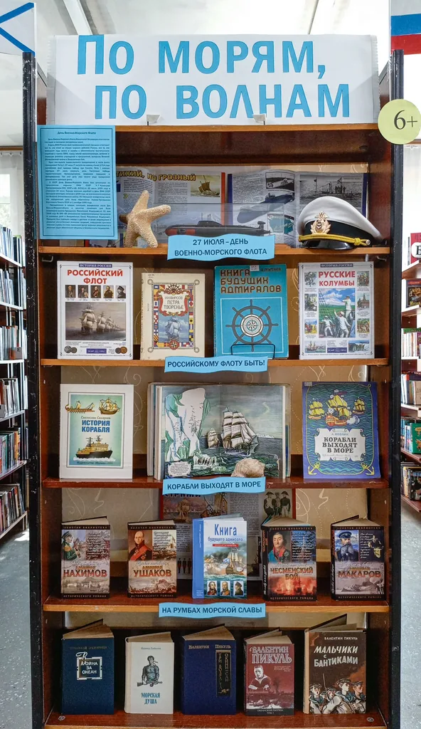 В библиотеке-филиале № 3 оформлена и действует Книжно-предметная выставка «По морям, по волнам», посвящённая Дню Военно-Морского Флота России, который отмечается в последнее воскресенье июля (в 2025 году – 27 июля). В этот день свой профессиональный праздник отмечают все те, кто стоит на страже морских рубежей России, кто связан с обеспечением боеготовности кораблей и частей ВМФ.