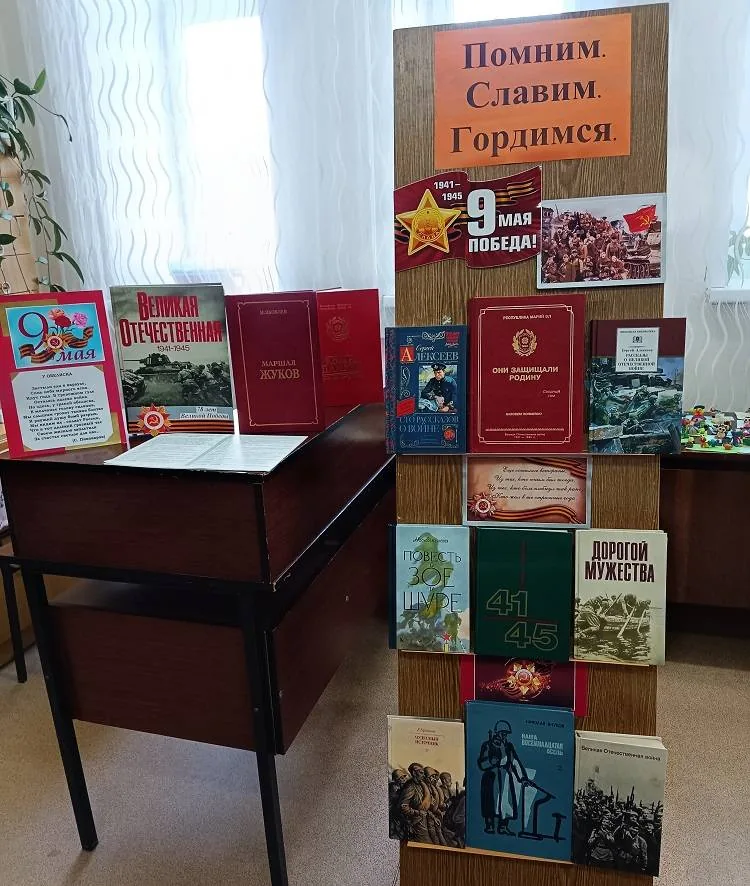 Близок великий праздник 9 мая – День Победы, который остается в сердцах народа одним из самых трагичных и незабываемых событий военной истории Отечества. К 78–й годовщине Победы в Великой Отечественной войне в библиотеке – филиале №1 в рамках недели патриотического воспитания «Навстречу Великой Победе» оформлена выставка «Помним. Славим. Гордимся».
