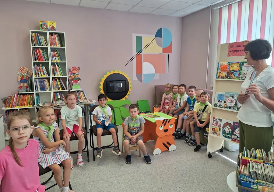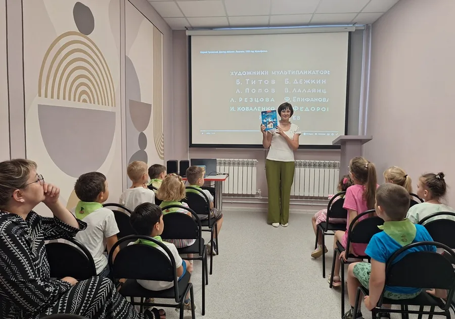 Сначала детям провели экскурсию по библиотеке, познакомили с многочисленными выставками, рассказали о возможностях библиотеки и о правилах пользования. Далее дети отвечали на вопросы викторины «Добрый доктор Айболит», играли в интеллектуальные игры, а в заключении познавательной программы ребятам был показан черно- белый мультфильм 1937 года выпуска по одноименной сказке, где так глубоко переданы эмоции, что дети смотрели мультфильм, затаив дыхание.