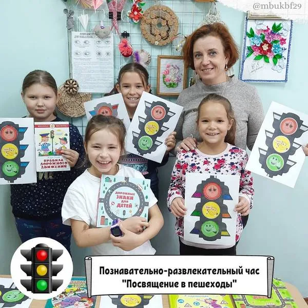 10 сентября, в рамках «Месячника безопасности детей», сотрудники библиотеки-филиала №29 провели познавательно-развлекательный час «Посвящение в пешеходы» для воспитанников младшей группы детского клуба «Факел». В этот день дети узнали об истории возникновения правил дорожного движения. Библиотекарь познакомила ребят с главными помощниками на дороге: со Светофором и с дорожным знаком «Пешеходный переход».Для ребят были подготовлены викторины и игры, своими руками дети выполнили аппликацию-памятку «Наш друг – Светофор».