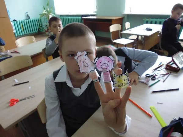 В начале познавательно-творческого часа детям рассказали о театре, порассуждали о профессиях, которые востребованы в театральном мире. Затем спросили, какие виды театров дети знают. Более подробно школьникам было рассказано о кукольном театре, о кукольниках и видах кукол (марионетки, перчаточные, пальчиковые, тростевые и т.д.). Думаем, многие согласятся с тем, что в фигурке, созданной по подобию человека, заключена некая магическая сила, - будто тот, кто корпел над безмолвным творением, вложил в него частицу собственной души, эмоций, желаний… Детям предложили примерить на себя роль создателя кукол – смастерить своими руками пальчиковые куклы. Школьники с удовольствием выполнили это задание.