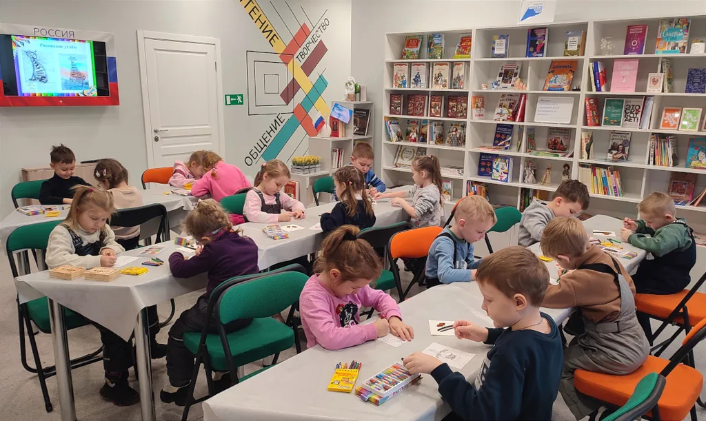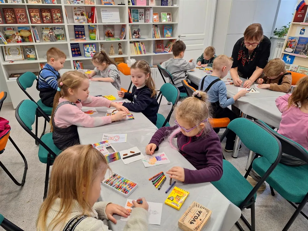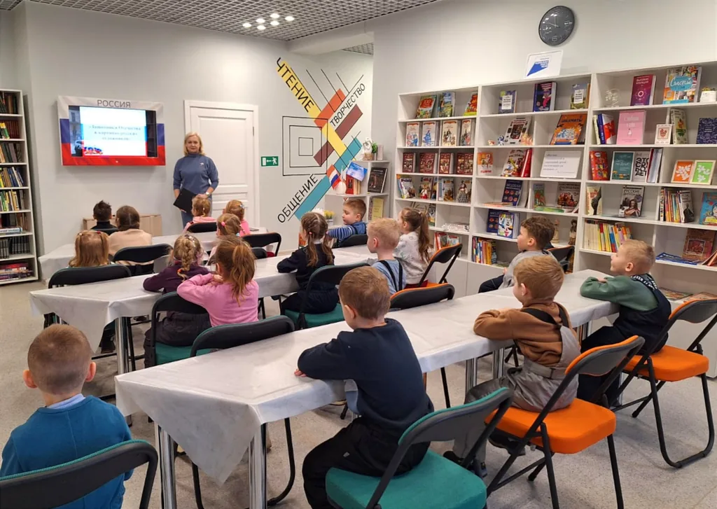 В модельной библиотеке-филиале №1 в рамках Года защитника Отечества для воспитанников старшей группы Детского сада №10 «Звёздочка» г. Йошкар-Олы прошло познавательно-творческое занятие «Защитники Отечества в картинах русских художников».