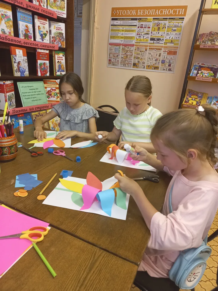 В завершение мероприятия для детей состоялся мастер-класс «Цветы лета» и ребята изготовили поделки из цветной бумаги в виде летних сказочных цветов.